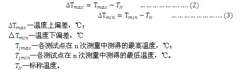 恒定濕熱試驗(yàn)設(shè)備的溫度偏差按下式計算: