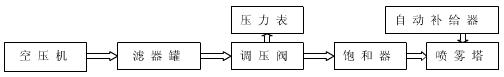 空氣壓縮機產(chǎn)生壓力空氣(正壓)經(jīng)過濾罐過濾通過調(diào)壓閥給到飽和器、飽和器的出氣口接到噴嘴產(chǎn)生濕度極高而溫度時宜的氣溫源,并同時把噴塔中的鹽水吸上來達到噴霧效果。鹽霧試驗箱空氣壓縮機目的是使水成為霧狀,飽和器目的是鹽水不結(jié)晶。